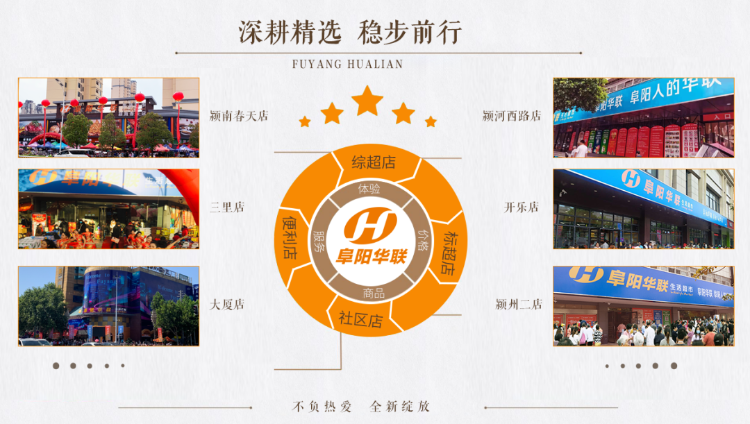 周邊3公里范圍居民人群基數(shù)大,且逐年增多,對大型超市的需求非常迫切。以周邊家庭客群為主要目標客群,強調生活與休閑娛樂的交流與融合。自1996年品牌創(chuàng)立,阜陽華聯(lián)不斷創(chuàng)新,用多元化的業(yè)態(tài)來布局市場,目前有綜超店、標超店、社區(qū)店、便利店等四大業(yè)態(tài),逐漸實現(xiàn)一個個步行10分鐘“華聯(lián)商圈”。