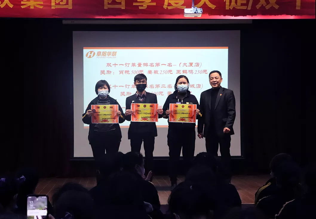 歷時(shí)兩日的大會(huì),阜陽華聯(lián)集團(tuán)對(duì)在雙11大促工作中表現(xiàn)卓越的員工進(jìn)行了表彰。