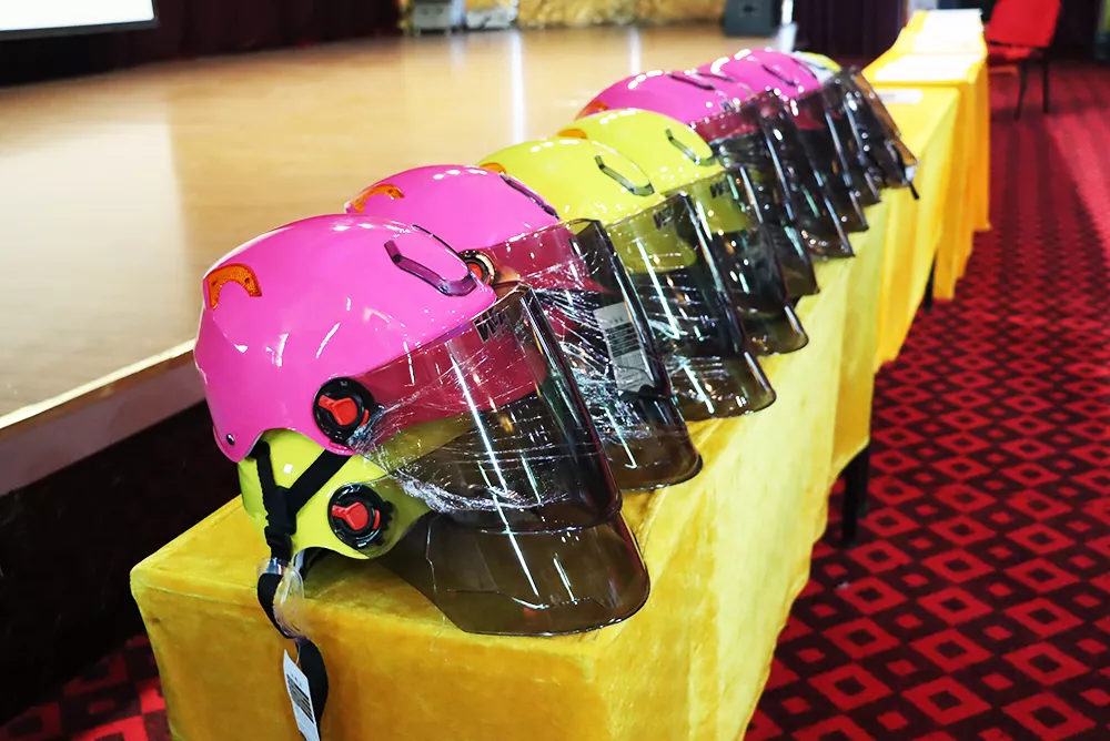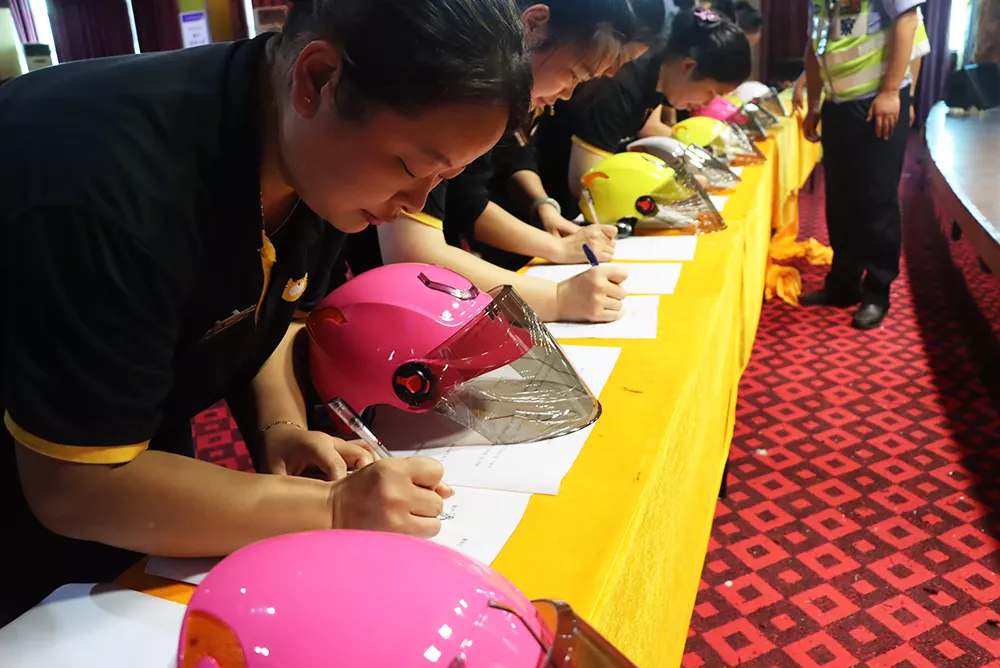 會(huì)上,交警同志將二十余頂愛(ài)心頭盔免費(fèi)發(fā)放給華聯(lián)員工,并現(xiàn)場(chǎng)示范如何正確佩戴。員工自覺(jué)簽下安全承諾書(shū),紛紛表示這樣的活動(dòng)很有意義,自己也會(huì)用實(shí)際行動(dòng)提醒身邊的親戚朋友和同事要自覺(jué)佩戴安全頭盔、系好安全帶,確保自身安全。