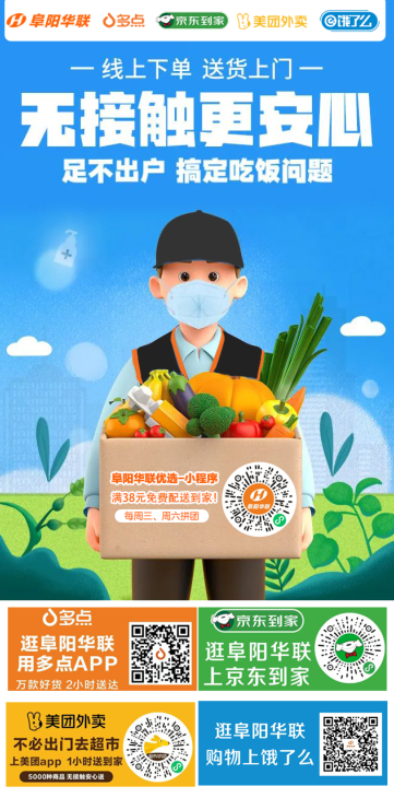 在滿足市民到店采購需求的同時(shí),阜陽華聯(lián)各門店積極向周邊社區(qū)提供到家服務(wù),顧客可通過阜陽華聯(lián)優(yōu)選小程序、多點(diǎn)平臺(tái)、京東到家、美團(tuán)外賣、餓了么等線上平臺(tái)下單,門店員工揀貨、裝袋、打包后,多種舉措確保居民更安全便捷、無接觸配送購買到家庭生活所需商品。