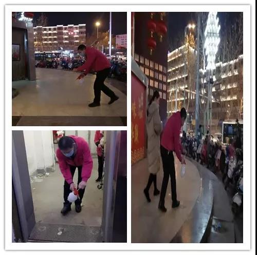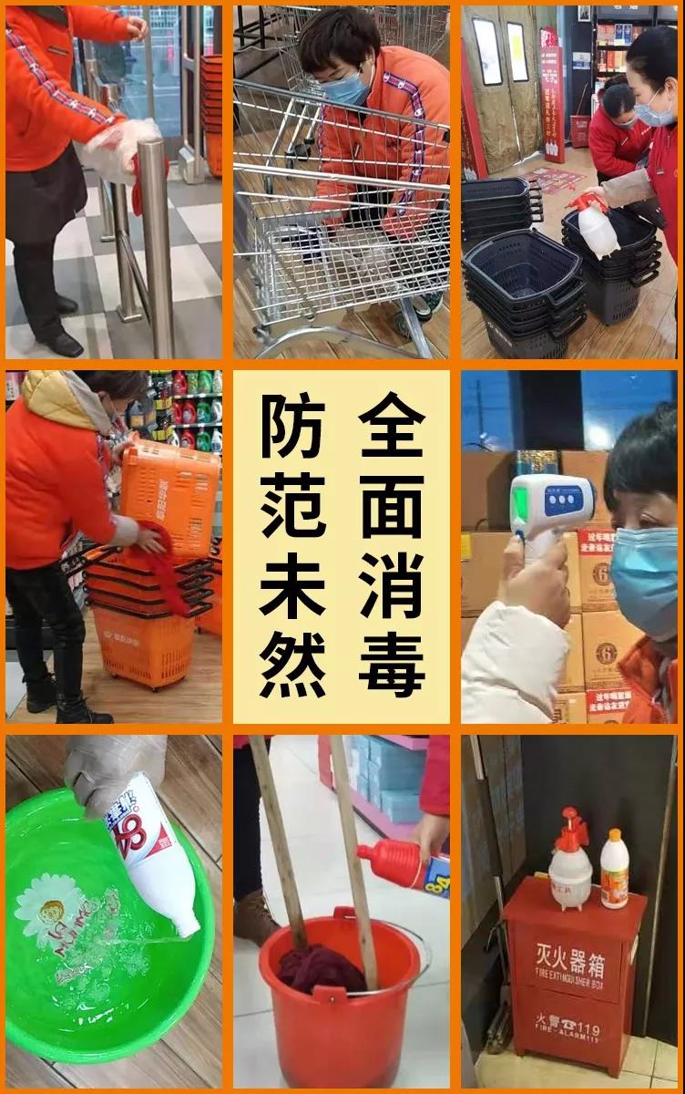 賣場外的走廊、電梯口,每一處死角都不放過,門店經(jīng)理、員工、保潔,全員齊上陣,做好賣場外的消毒保障工作。