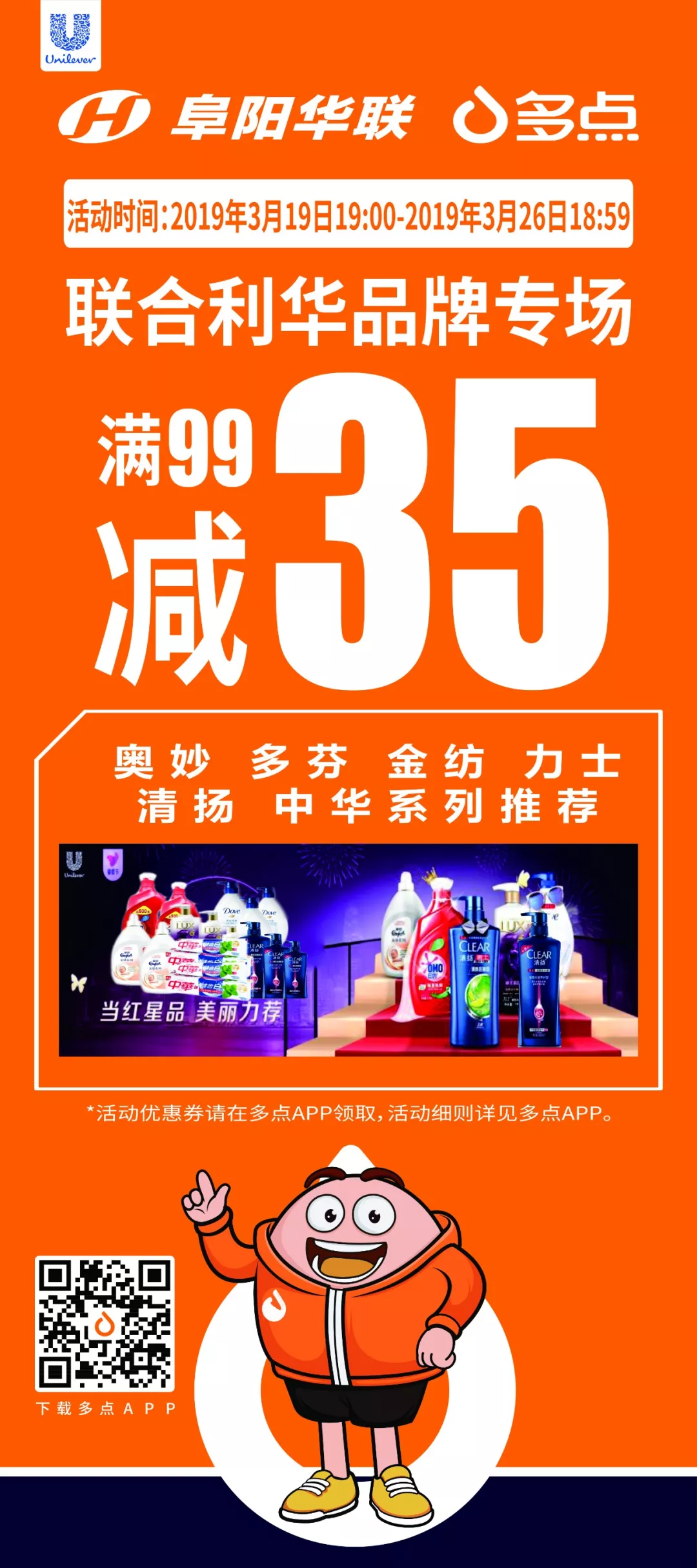 【阜陽華聯(lián)】聯(lián)合利華品牌獨家活動,專場滿99減35