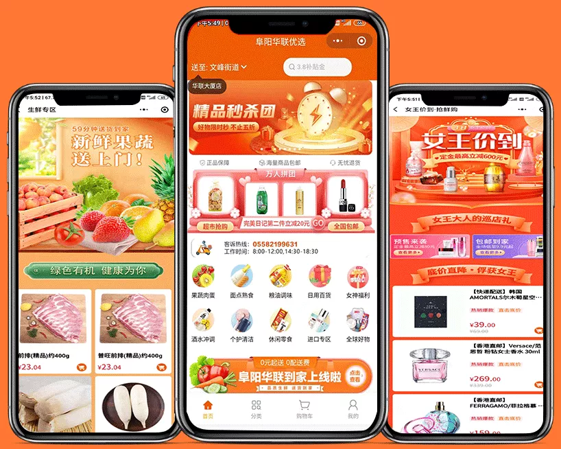 升級(jí)后的阜陽(yáng)華聯(lián)優(yōu)選小程序?qū)崿F(xiàn)了全門店同步上線,線上線下完全打通。