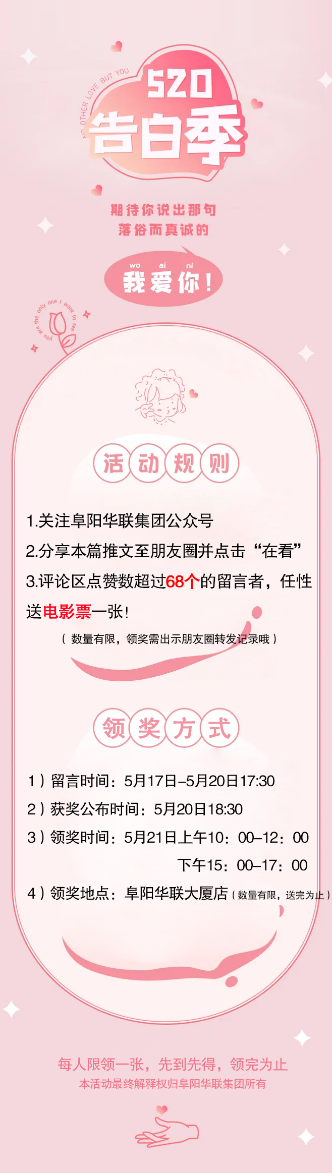 感謝小伙伴們參與: 阜陽華聯(lián)優(yōu)選520大促 #留言送好禮活動(dòng)#