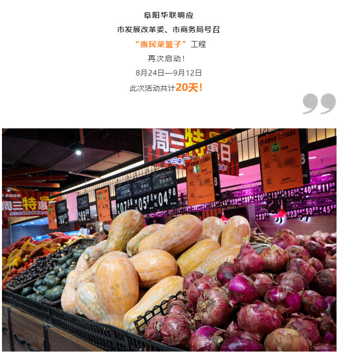 " 1元菜 ”又來啦!阜陽華聯(lián)中秋期間啟動“惠民菜籃子”工程!