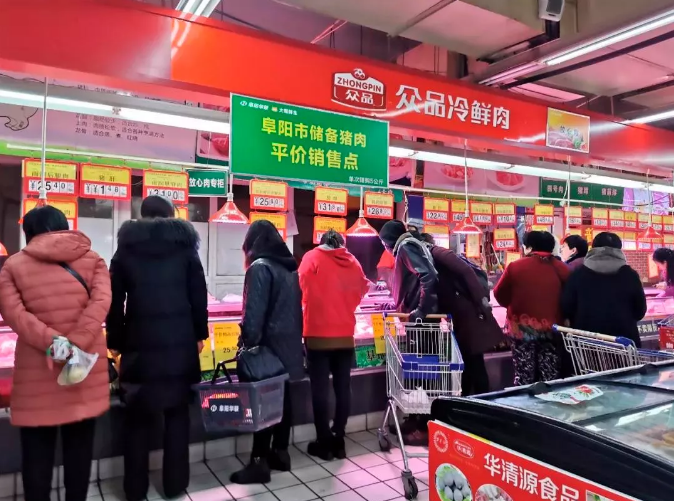阜陽(yáng)華聯(lián)大廈店柜臺(tái) 前圍滿了選購(gòu)平價(jià)豬肉的市民 不忘初心,不負(fù)使命 是阜陽(yáng)華聯(lián)肩負(fù)的責(zé)任?。?/span>