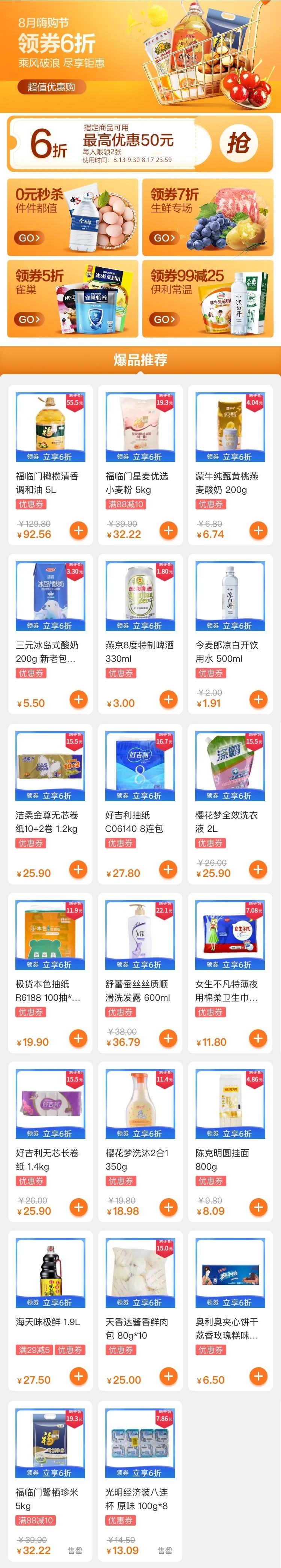 阜陽華聯(lián) | 8月多點線上嗨購節(jié)火熱來襲~6折神券,0元秒殺爆品,7折生鮮,越購越嗨皮!